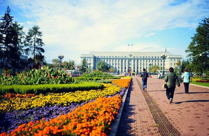 基洛夫廣場(chǎng)是伊爾庫(kù)茨克的中心廣場(chǎng),是伊爾庫(kù)茨克城市的發(fā)祥地,州政府辦公大樓、三大教堂、二戰(zhàn)勝利紀(jì)念墻、無(wú)名英雄烈士墓,愛(ài)情橋,伊爾庫(kù)茨克建立者紀(jì)念碑,莫斯科大門——伊爾庫(kù)茨克的凱旋門等均坐落在周邊。 廣場(chǎng)上的無(wú)名烈士墓上書(shū)寫有“你的名字無(wú)人知曉,你的功勛永垂不朽”字樣。慘烈的戰(zhàn)爭(zhēng)拆散了無(wú)數(shù)的家庭,俄羅斯人至今依然對(duì)那些戰(zhàn)爭(zhēng)烈士懷著崇高的敬意,定情結(jié)婚都要來(lái)到這里銘誓。五星狀的火炬中燃燒著永不熄滅的長(zhǎng)明火,那些為了爭(zhēng)取和平而獻(xiàn)出生命的人們,他們的功勛和靈魂永垂不朽。 廣場(chǎng)以蘇聯(lián)布爾什維克革命者和重要領(lǐng)導(dǎo)人之