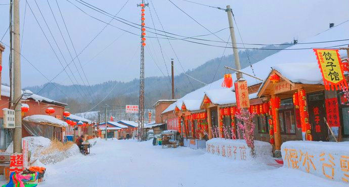 夢(mèng)幻家園是一個(gè)集住宿、餐飲、娛樂、二人轉(zhuǎn)、雪上娛樂與一體的莊園,占據(jù)了雪韻大街的黃金地段,地盤極大,院子里幾乎涵蓋了雪的各種造型,因最初是劇組拍戲留下的,布景比普通農(nóng)家院落更精致些,還有水井、小橋等點(diǎn)睛之筆,能拍出些好照片。沿木棧道爬上半山腰的觀景臺(tái),可以俯拍莊園和雪鄉(xiāng)的全景。